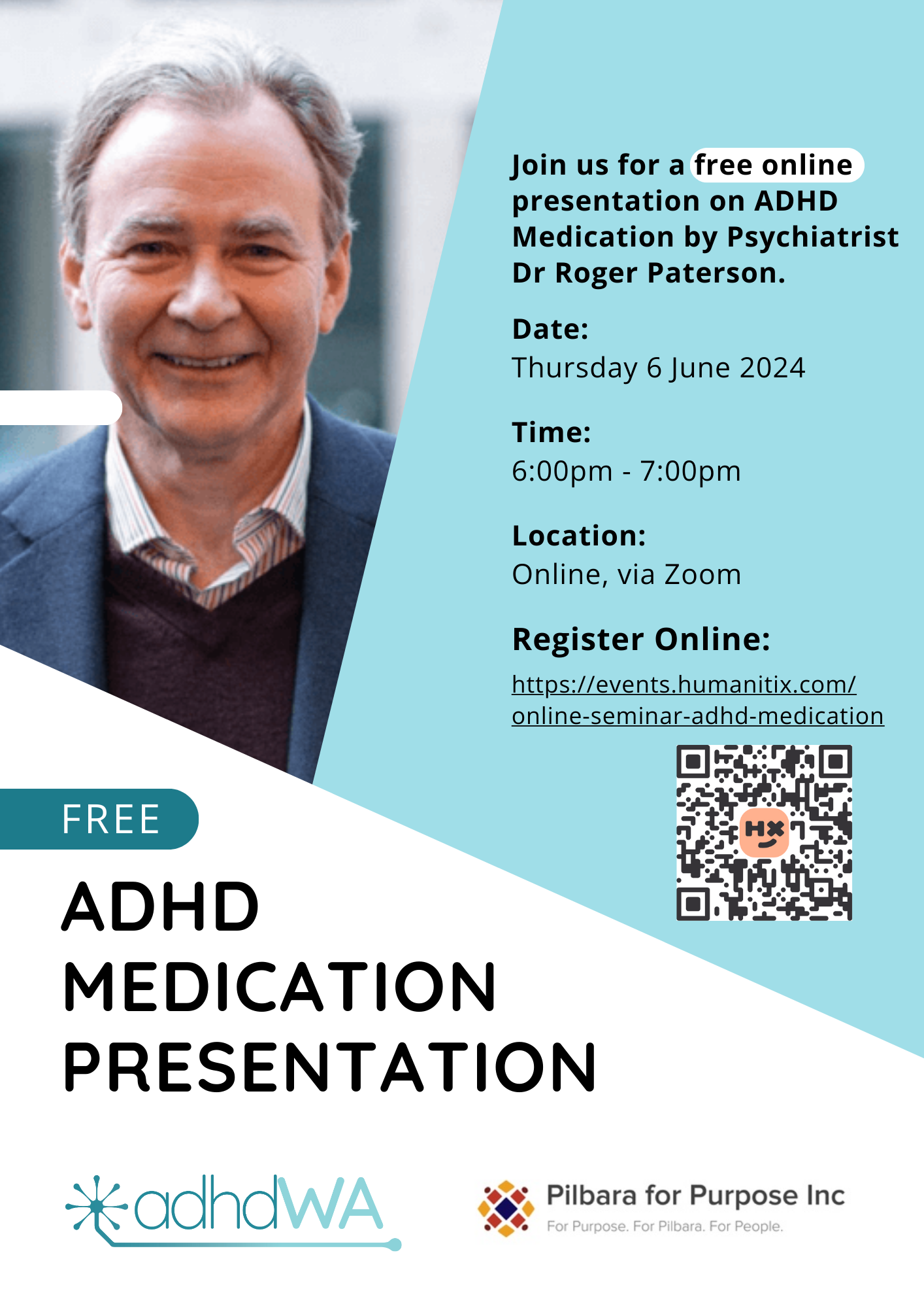 Online via Zoom WA, AustraliaFree online presentation on ADHD Medication by Psychiatrist Dr Roger Paterson. Click HERE to register.