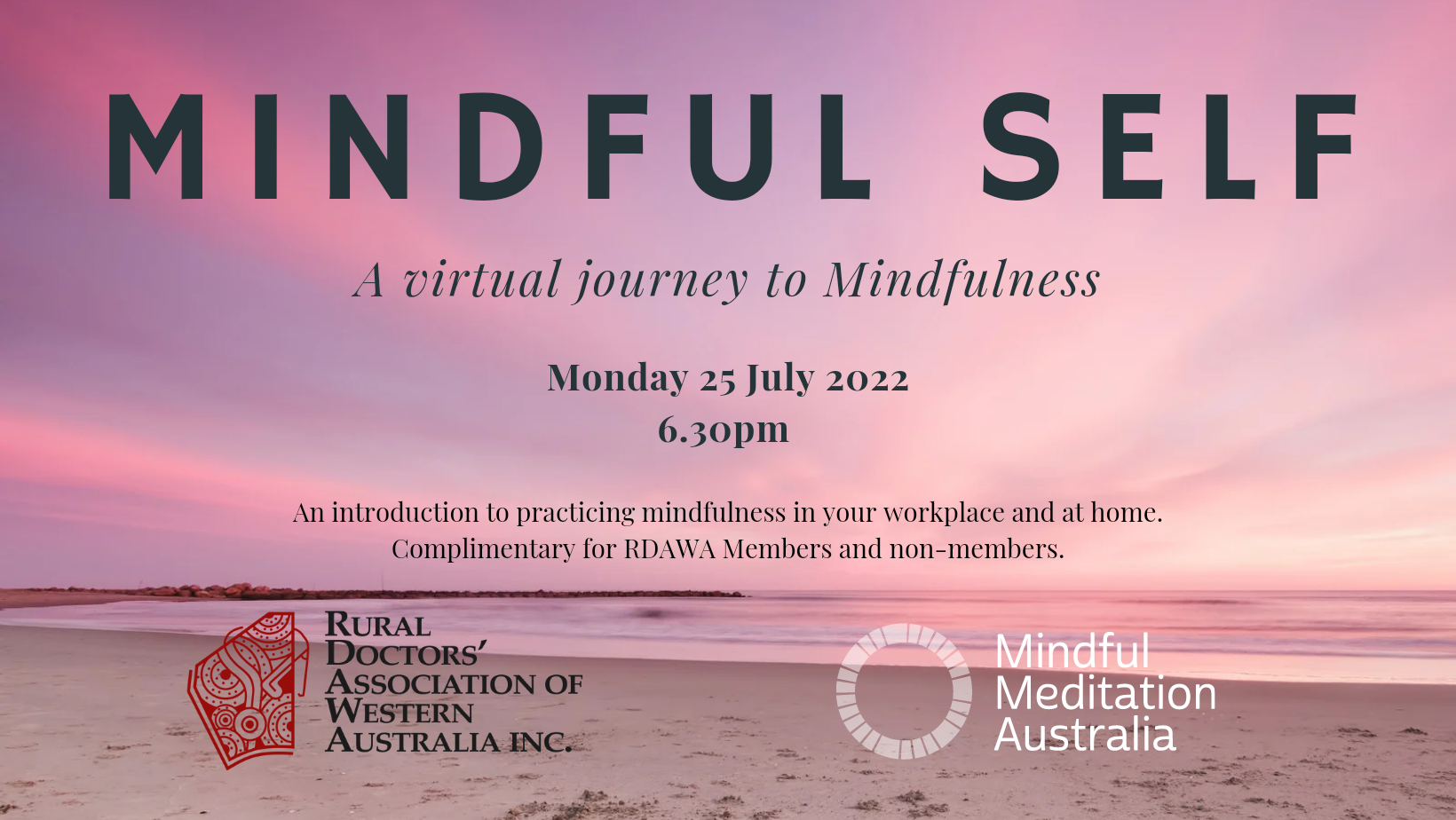 Jul 25 6:30 pm - 7:30 pm Mindful Self Webinar – A virtual journey to Mindfulness (complimentary for RDAWA Members and non-members) Online Webinar WA Event Details Get Directions