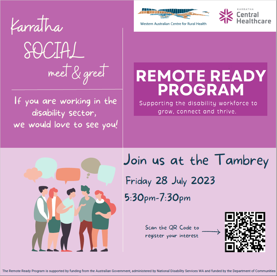 Jul 28 5:30 pm - 7:30 pm Remote Ready Program social networking event | Karratha The Tambrey Lot 4227 Tambrey Drive, Nickol Event Details Get Directions