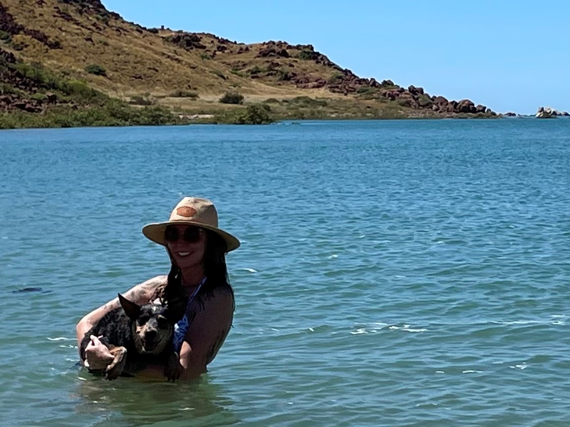 Oh and don’t forget about Indi – Bec’s very happy furbaby enjoying a dip in the ocean! Let’s ask Bec some questions…